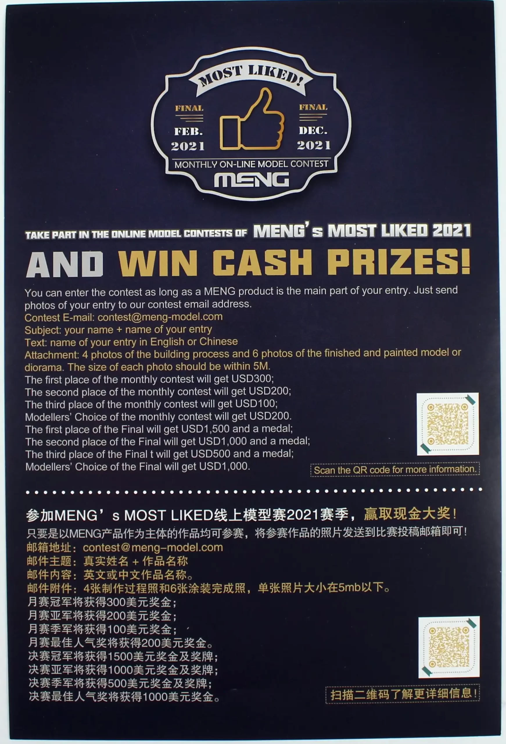 Meng Model, 2011 yılında kurulan ve plastik model kitleri konusundaki yenilikçi yaklaşımıyla tanınan bir markadır. Askeri araçlardan otomobillere, figürlerden motorlara kadar geniş bir ürün yelpazesi sunan firma, model severlerin beklentilerini en üyksek seviyede karşılamaya odaklanmıştır.